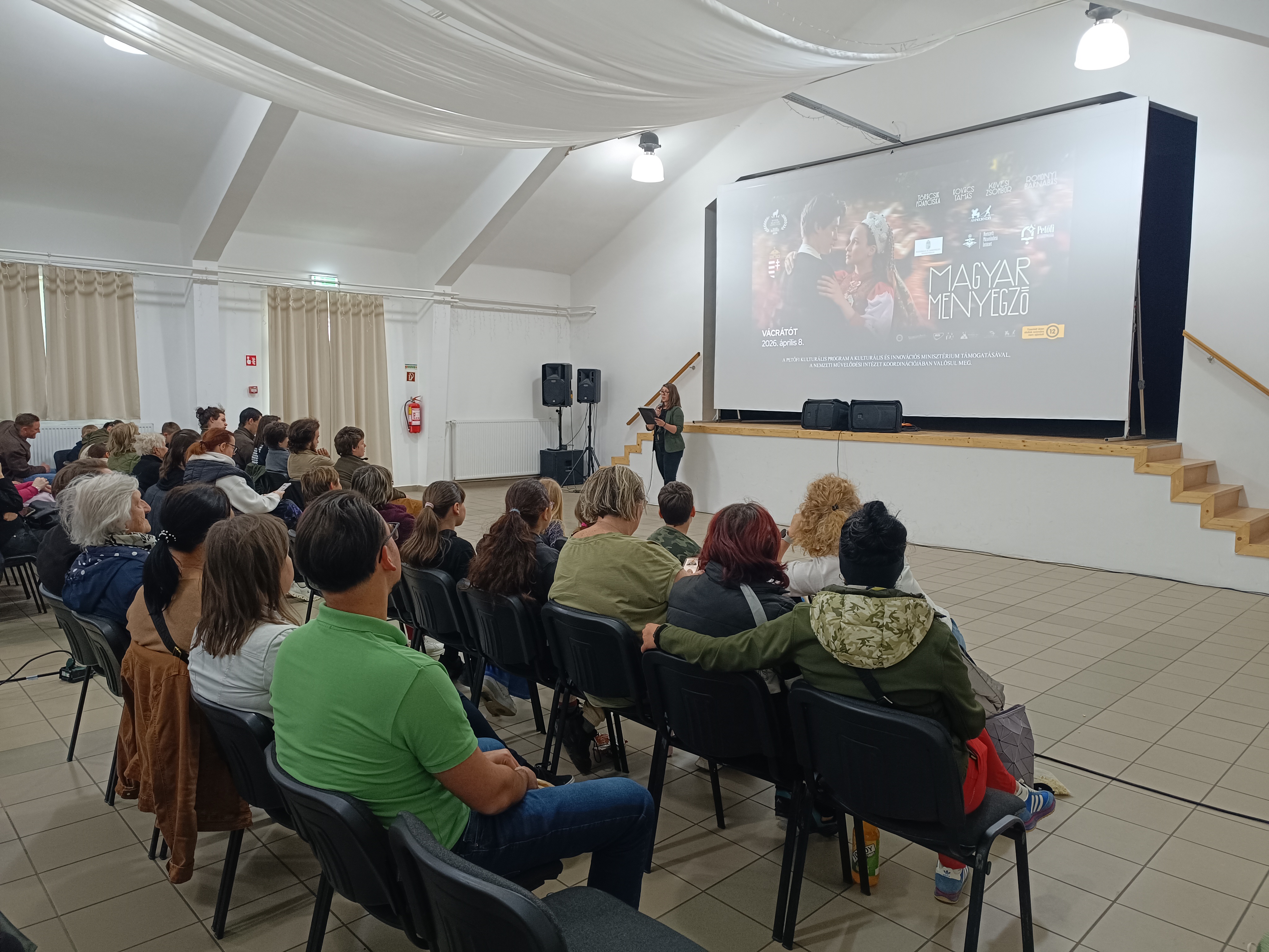 A programot a helyi hagyományőrző egyesülethez tartozó Vácrátóti Menyecskék előadása színesítette, amely méltó módon teremtette meg a hangulatot a Magyar Menyegző vetítése előtt.