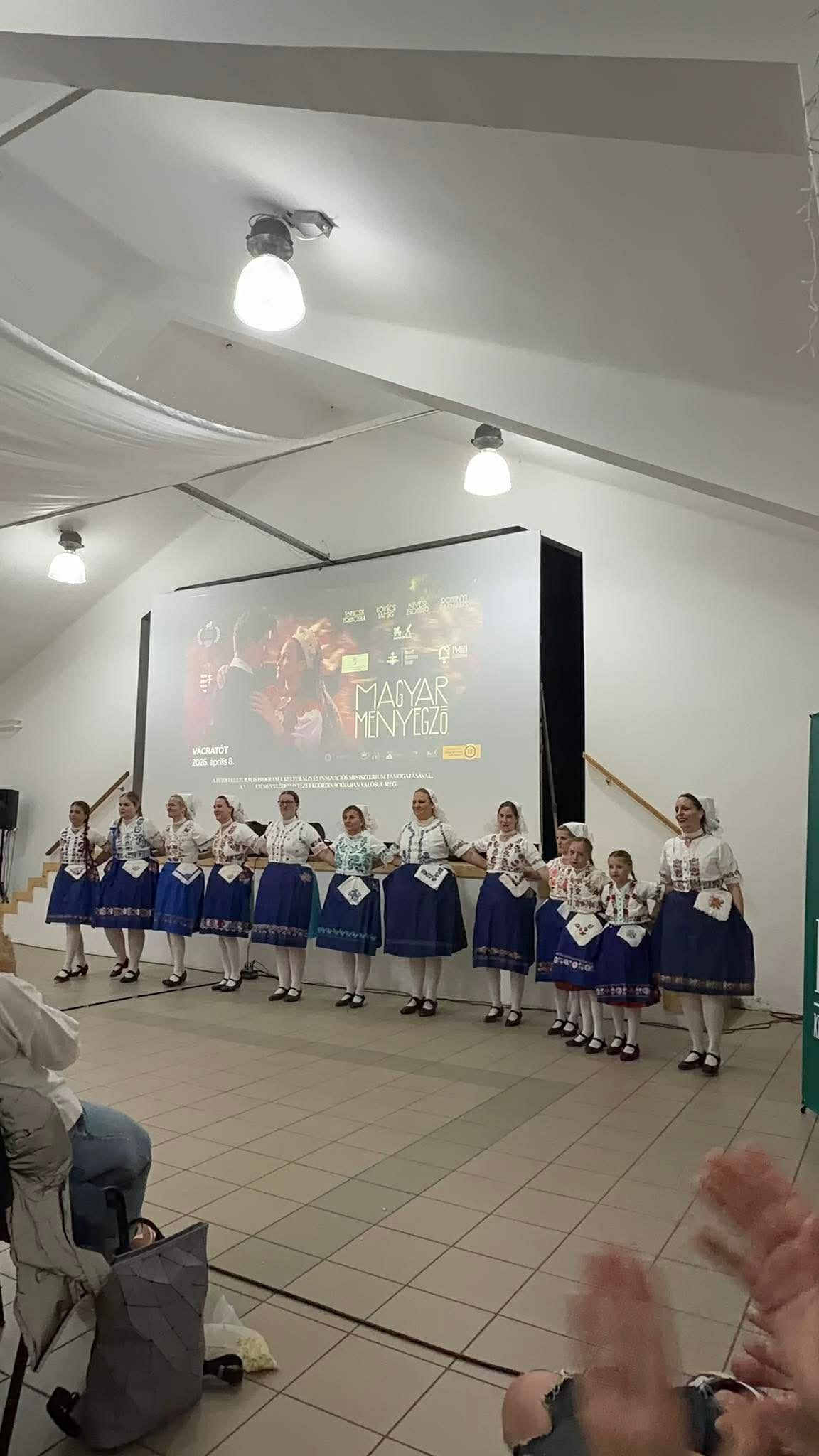 A programot a helyi hagyományőrző egyesülethez tartozó Vácrátóti Menyecskék előadása színesítette, amely méltó módon teremtette meg a hangulatot a Magyar Menyegző vetítése előtt.