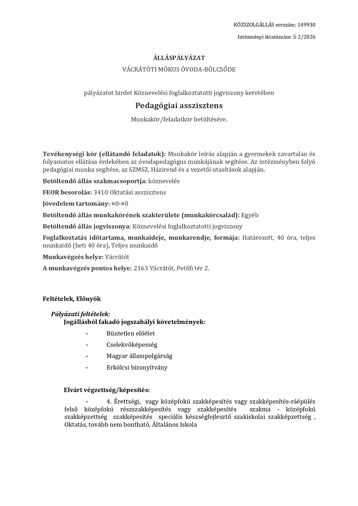 TOP Plusz-3.3.1-21-PT1-2022-00012 „Bölcsődei férőhelyek bővítése Vácrátóton, új épület kialakításával”